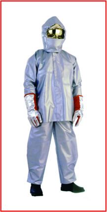 镀铝防火防化服/背带裤。外层覆有(yǒu)镀铝膜。中层Hypalon®防化面料,内层Nomex®防火面料,并覆有(yǒu)镀铝层,保证套装兼有(yǒu)防化、阻燃和隔热多(duō)重功能(néng)
